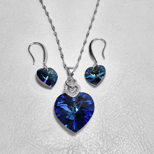 Conjunto Corazón Azul Profundo | Plata 925 y Cristal