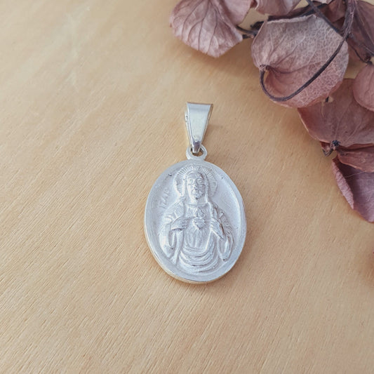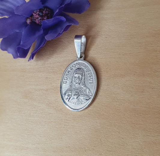 Escapulario de Plata Sagrado Corazón de Jesús 22 mm