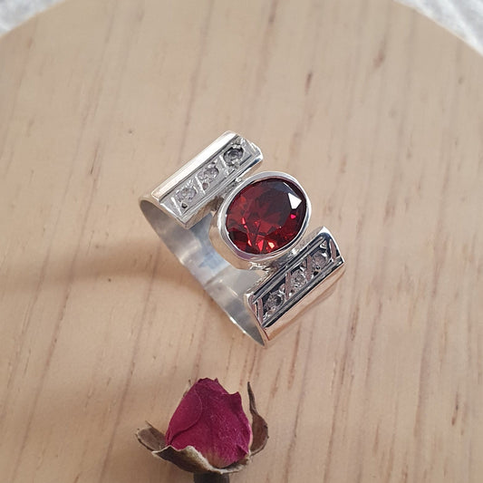 Anillo Rojo Plata con Oro 18kl.