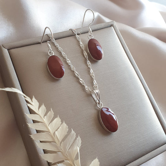 Conjunto Óvalo Plata con Piedra Natural Jaspe