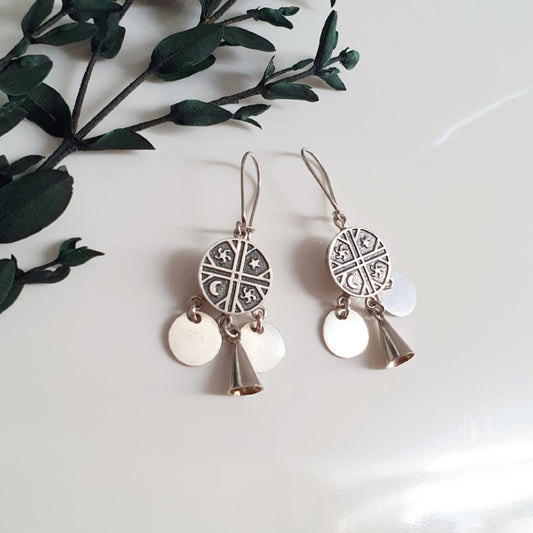 Conjunto Plata Nacional Kultrun Mapuche con Campanas.