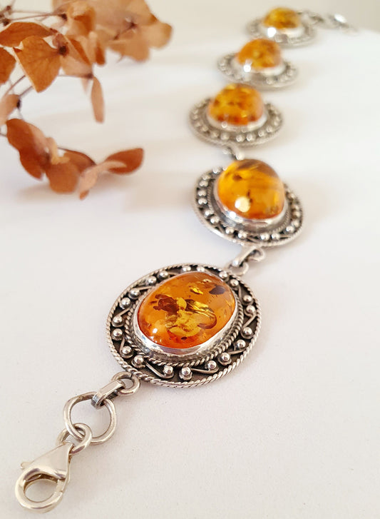 Pulsera Plata con Piedra Ámbar