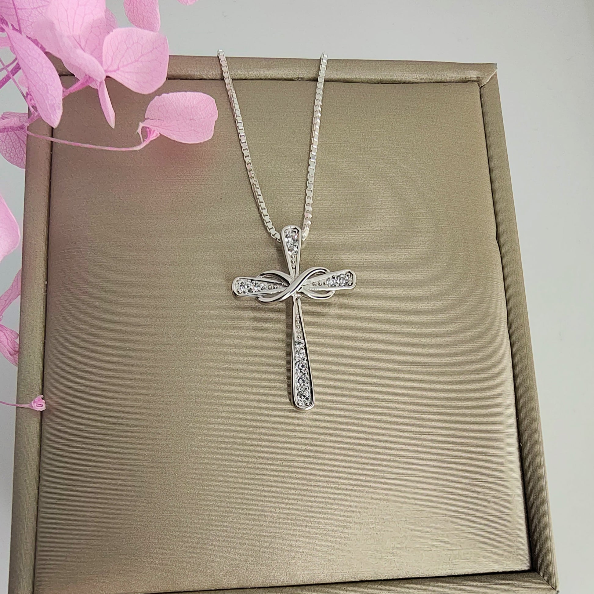 Cruz de Plata Ley 925 Italiana con incrustaciones de microcircones