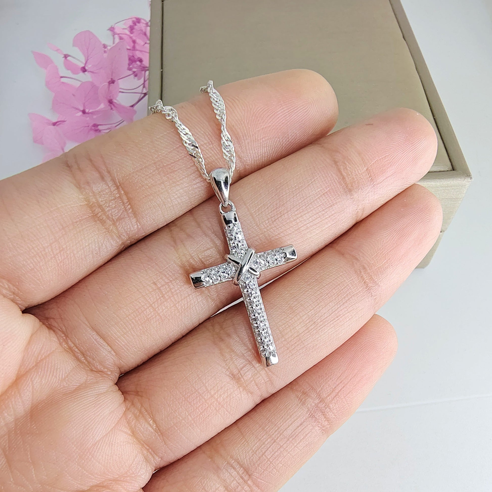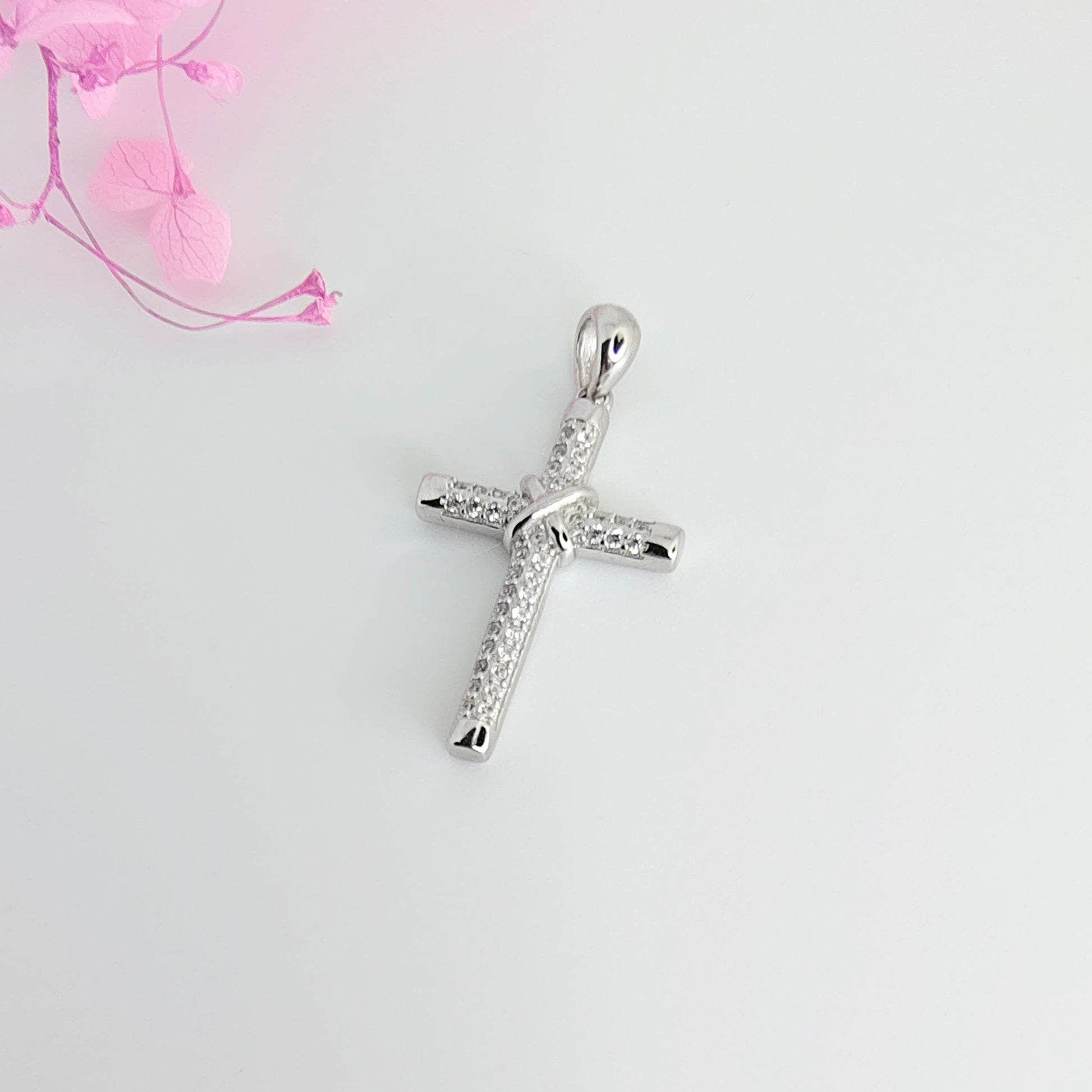 Cruz Plata con Microcircones 25mm