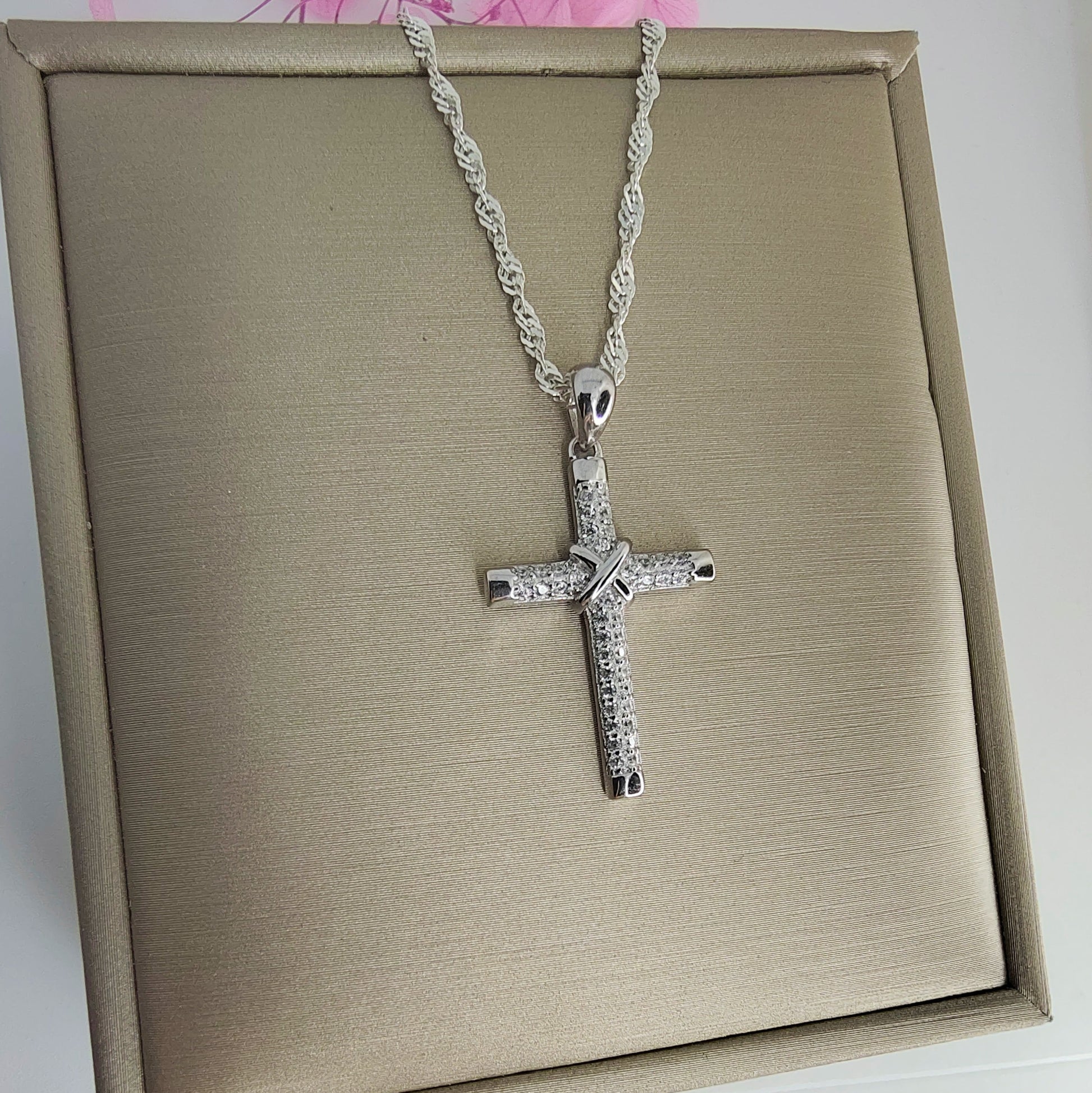 Cruz de  Plata Ley 925 Italiana con  incrustaciones de microcircones